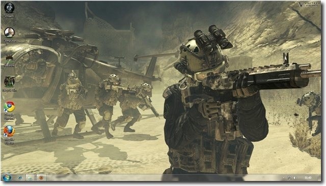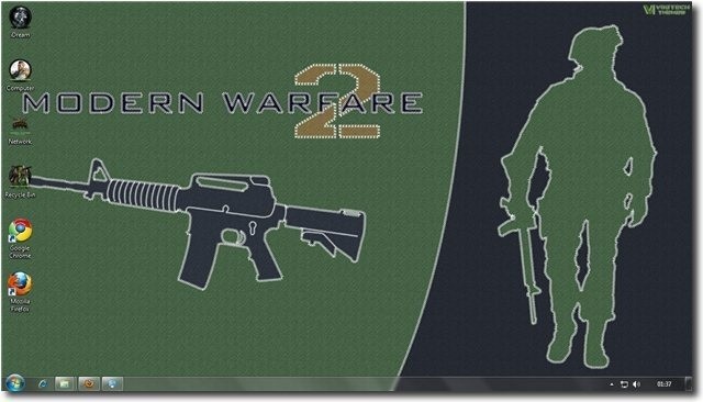 Bộ giao diện The Call Of Duty - Modern Warfare 2 Windows cung cấp 25+ hình nền HD khác nhau, sẽ tự động thay đổi sau mỗi 30 phút. Ngoài ra hình nền ra, The Call Of Duty - Modern Warfare 2 Windows còn bao gồm các biểu tượng và âm thanh quen thuộc trong game… sẽ có thể thay được vào các biểu tượng và và âm thanh mặc định trên Windows.