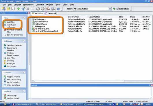 Dùng Add files và Add Folder để add các file và thư mục cần cài đặt vào chương trình.